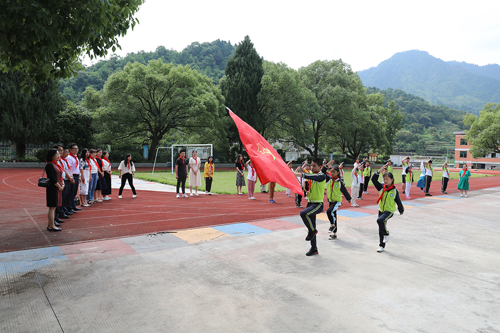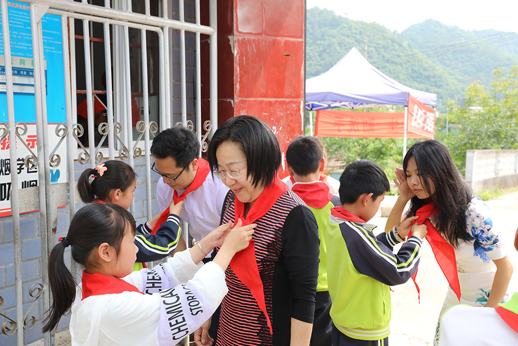 小茶娃們?yōu)檫h道而來的“客人們“系上紅領巾