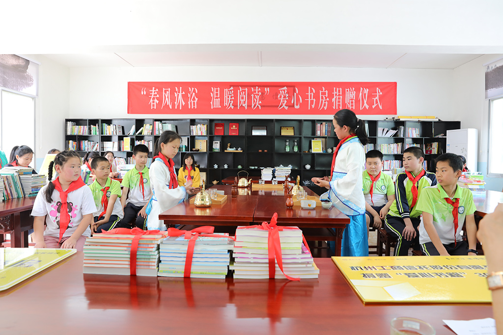 “人生也如同一本書,一本用自己的智慧去創(chuàng)造、用自己的雙手去書寫、用自己的雙腳去丈量的書。童年正處于人生之書剛打開的時期,有著無盡的想象。將來想做什么、想成為什么樣的人,書寫這些好篇章的筆就在孩子們你們自己的手中?!焙贾莨ど绦磐惺紫攧展倏挡ㄔ诰栀泝x式上為孩子們送上祝福,“真誠的希望你們珍惜書本、親近書本、融入書本,愿這些書籍能伴隨你們快樂成長,愿你們能在知識的海洋里感受成長的力量?!?