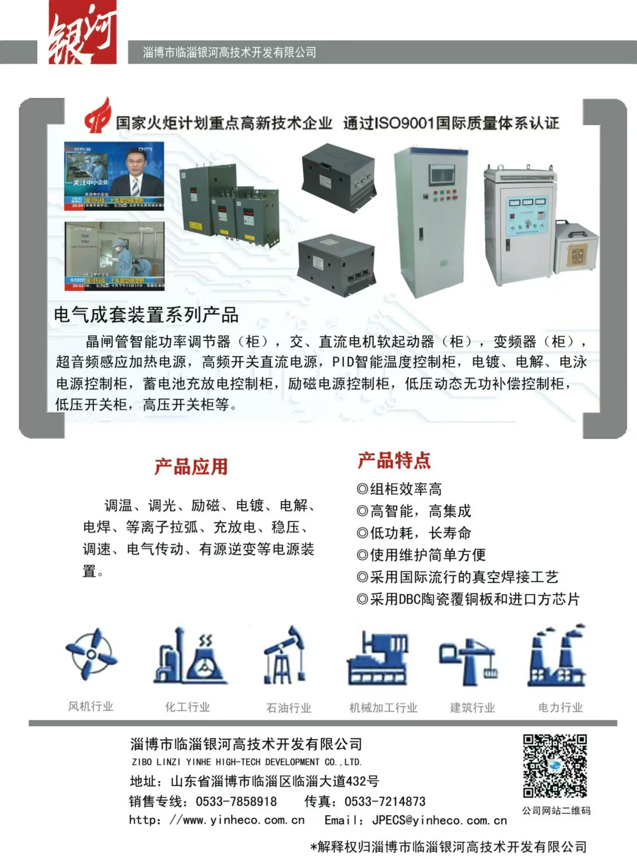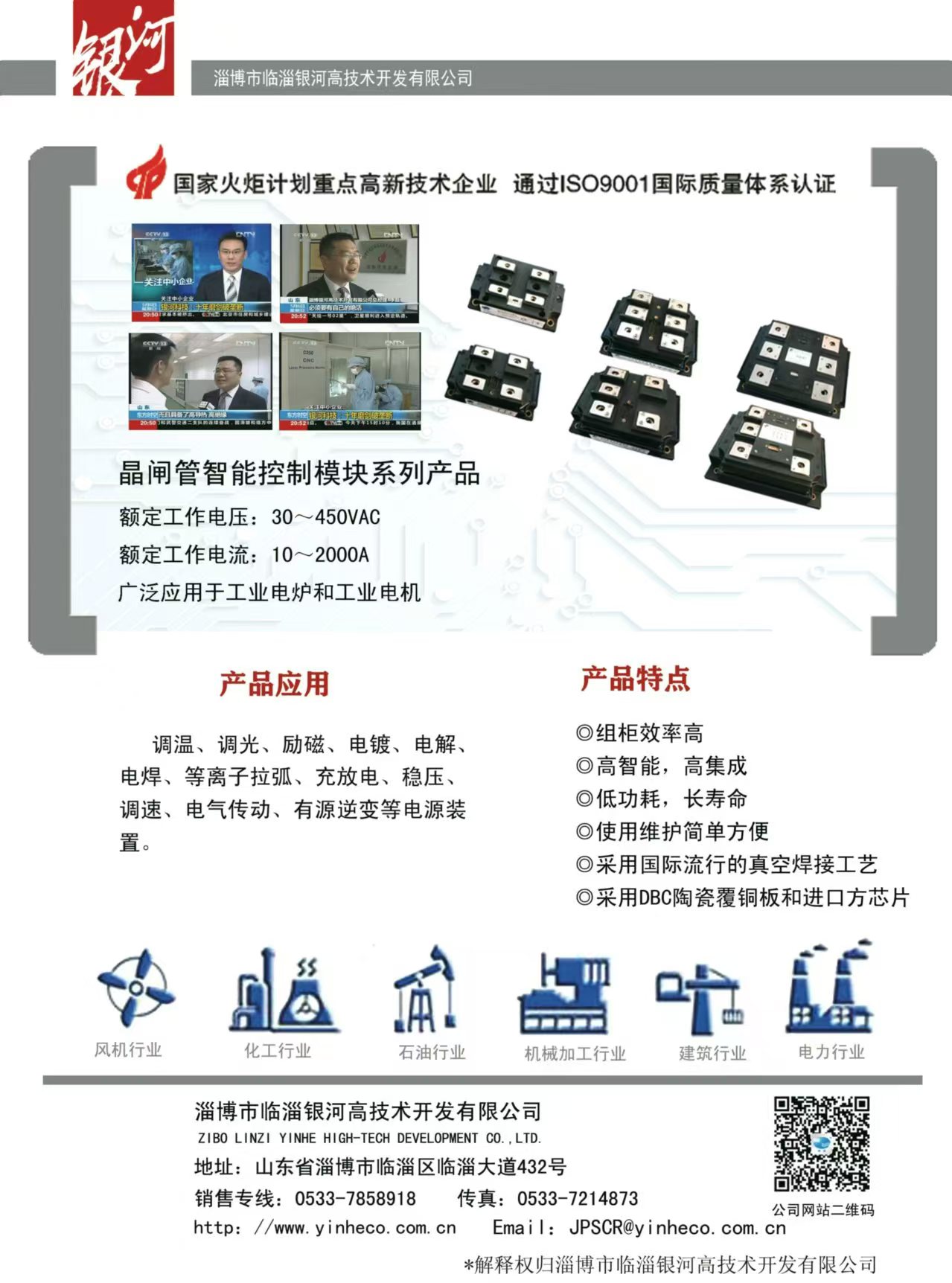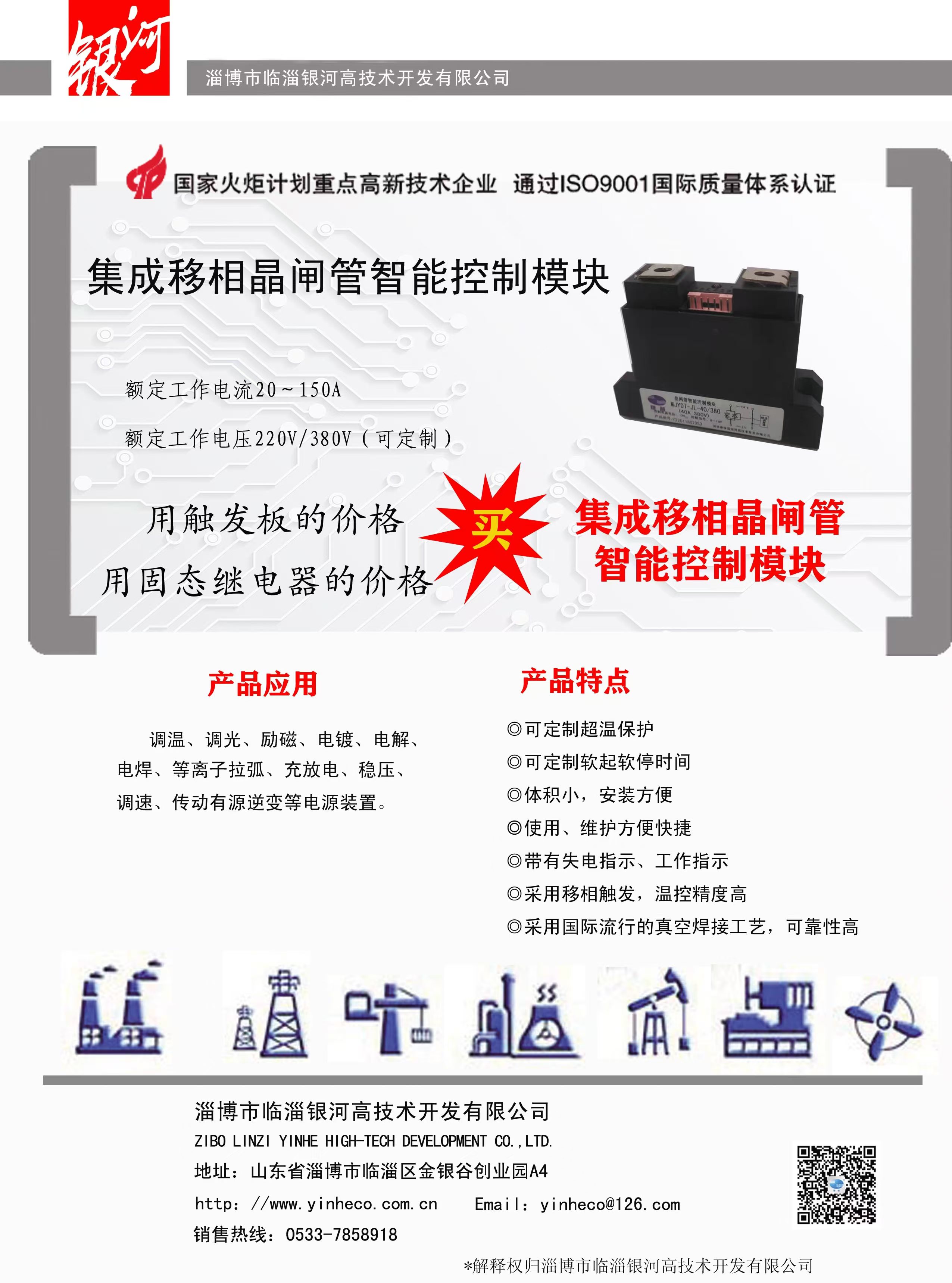 主要產(chǎn)品:DBC陶瓷覆銅板(190.5×138mm的母板或蝕刻線路的單、雙面成型零件)、大功率LED陶瓷覆銅散熱基板、聚光太陽能光伏陶瓷覆銅散熱基板、射頻電路用陶瓷覆銅板;晶閘管智能控制模塊、恒流恒壓控制模塊、除鐵器模塊、MTC、MTX、MTG、MDC、MDS、MDQ、SSR(固態(tài)繼電器)、晶閘管移相觸發(fā)控制板、恒流恒壓控制板、雙閉環(huán)直流調(diào)速控制板、蓄電池充放電控制板等;承接各類控制柜(加熱電源控制柜、直流調(diào)速屏、交流或直流電機軟起動控制柜,充電電源控制柜、電鍍或勵磁電源控制柜等)。