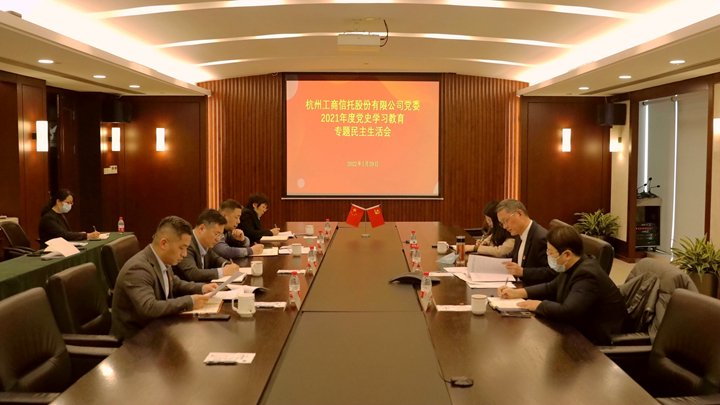 根據(jù)市紀委、市委組織部和金投集團黨委的統(tǒng)一部署和要求,2022年1月29日下午,杭州工商信托黨委召開黨史學(xué)習(xí)教育專題民主生活會,認真學(xué)習(xí)貫徹習(xí)近平總書記在中央政治局黨史學(xué)習(xí)教育專題民主生活會上的重要講話精神,總結(jié)成績、查擺不足,進行黨性分析,開展批評和自我批評,探討提出整改措施。駐金投集團紀檢監(jiān)察組副組長趙志萍、集團人力資源部相關(guān)人員到會指導(dǎo)。公司黨委書記、董事長虞利明主持民主生活會,黨委領(lǐng)導(dǎo)班子成員參加會議,黨群工作部相關(guān)人員列席會議。
