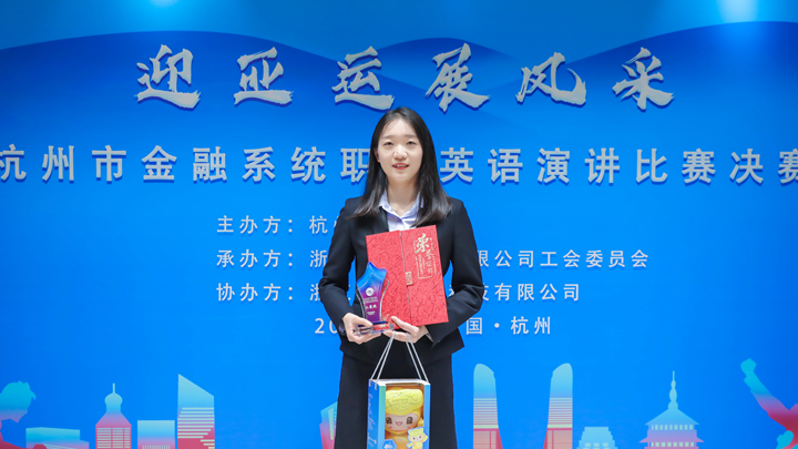4月15日,杭州市金融系統(tǒng)“迎亞運(yùn) 展風(fēng)采”職工英語演講比賽決賽成功舉行。經(jīng)過激烈的現(xiàn)場比拼,杭州工商信托員工卜羽婷榮獲二等獎。